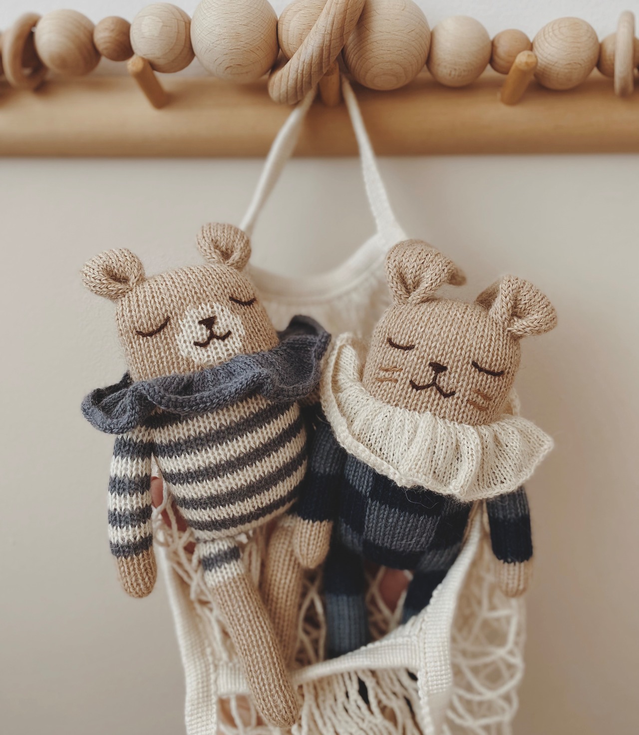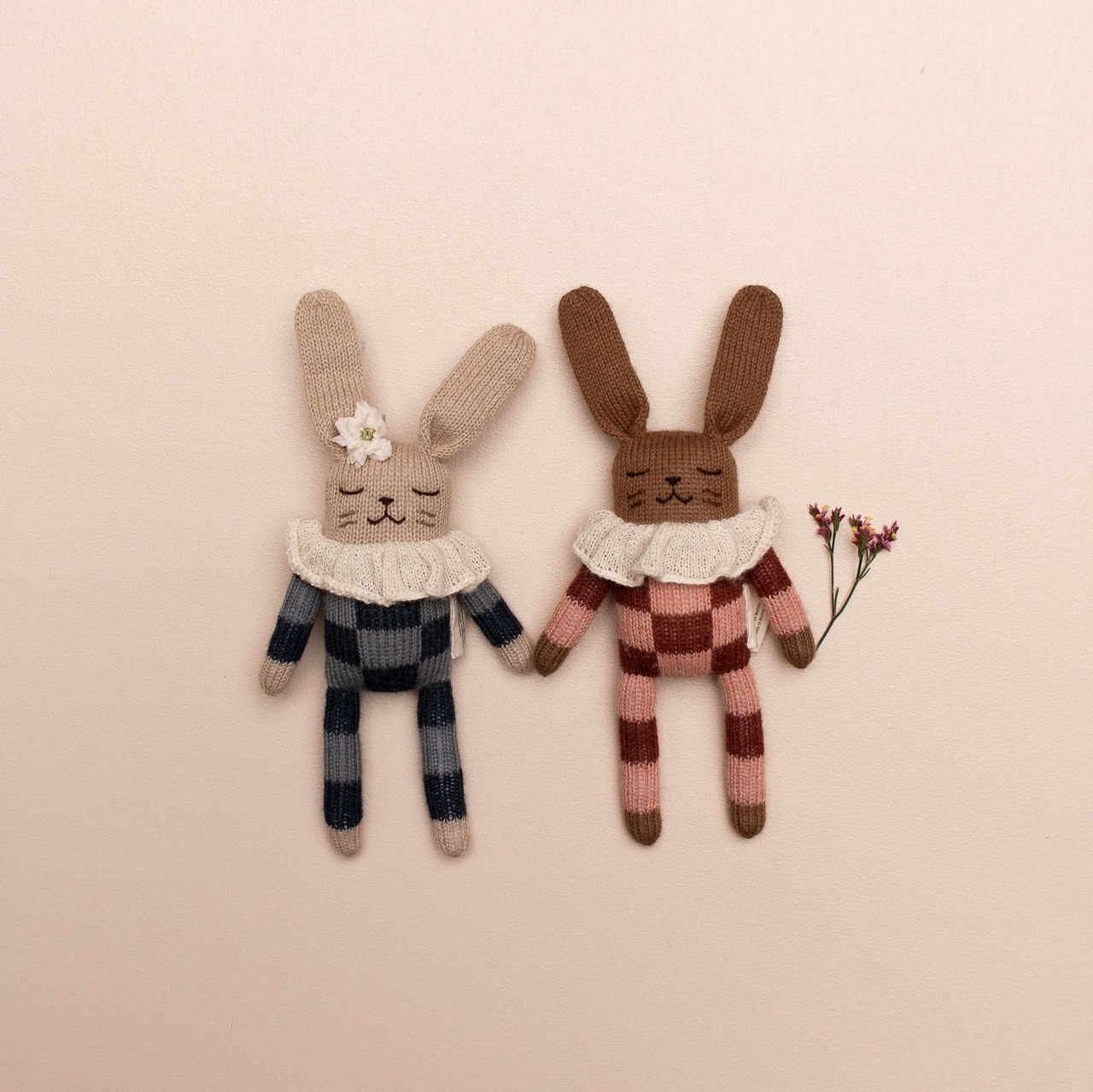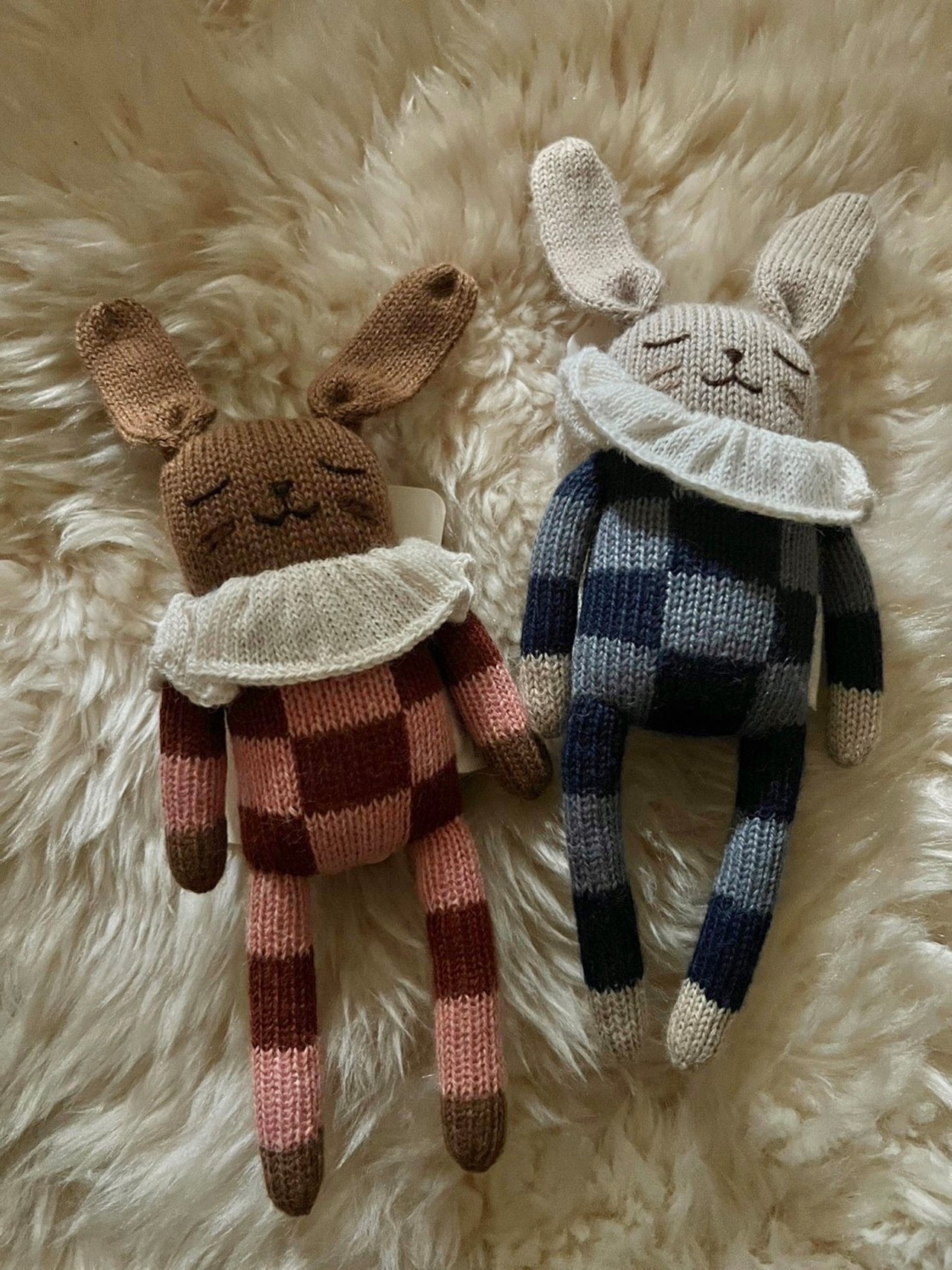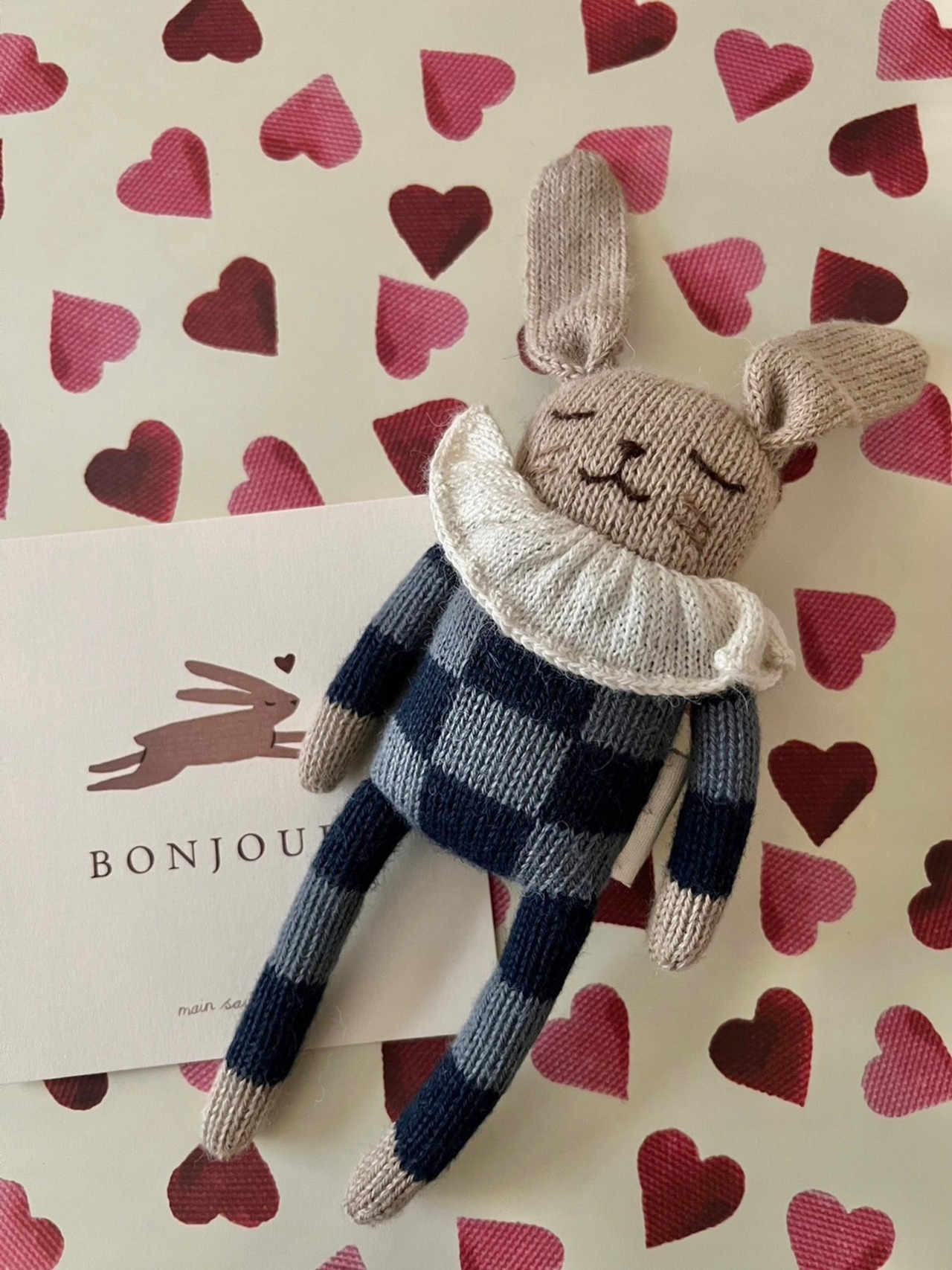 main sauvage|Bunny knit toy|navy check pyjamas